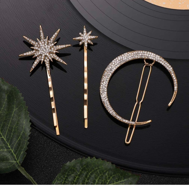 Moon and star set of 3 hair clips