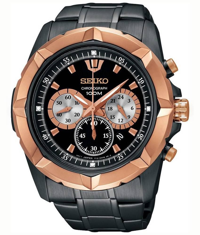 Seiko Srw028p1 Black Metal Analog-Chronograph Watch for Men